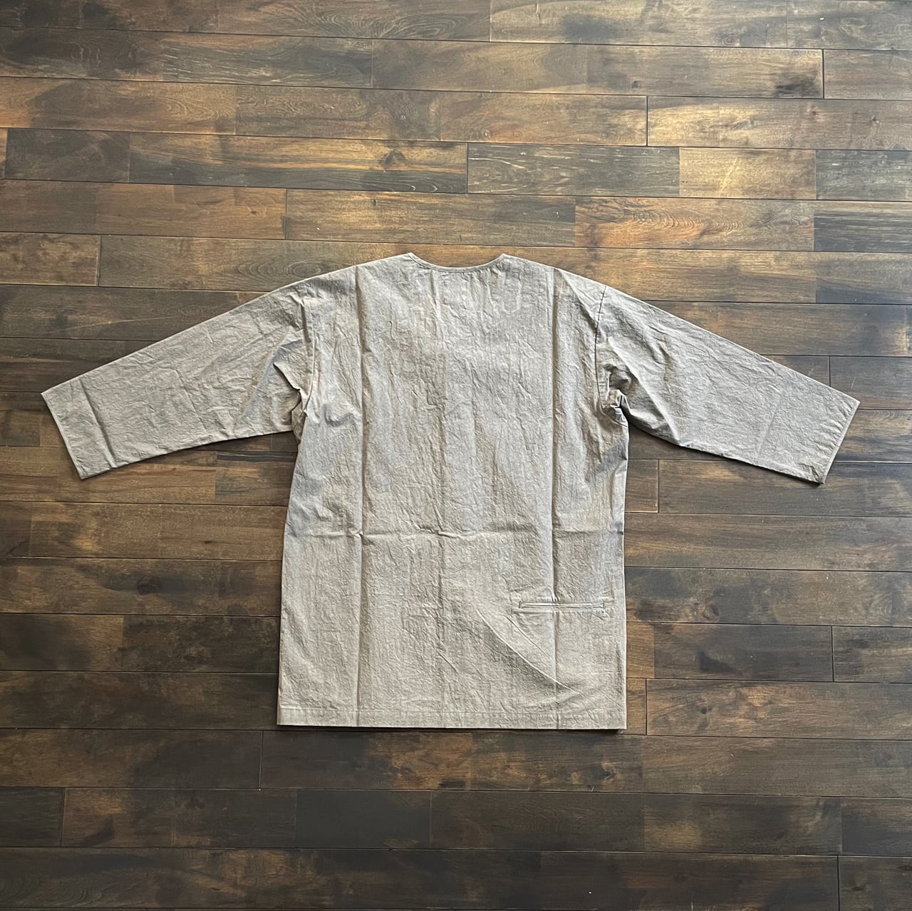 ワンポイントで後ろ左身頃裾にポケットが付いています。
